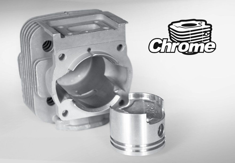 Технология пористого хромирования внутренней поверхности цилиндра увеличивает износостойкость цилиндро-поршневой группы в 3-5 раз. Два поршневых кольца обеспечивают необходимый уровень компрессии в течение всего срока эксплуатации.