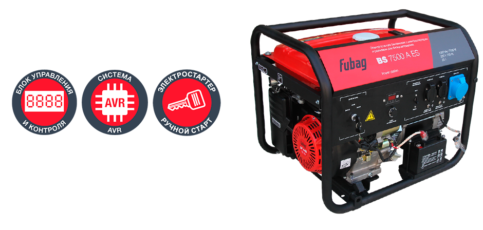 Бензиновая электростанция FUBAG BS 7500 A ES в продаже по цене 0 руб. в Интернет-магазине Проф-инструмент с доставкой в Екатеринбурге и Свердловской области. Звоните по телефону +8 (800) 302-10-51.