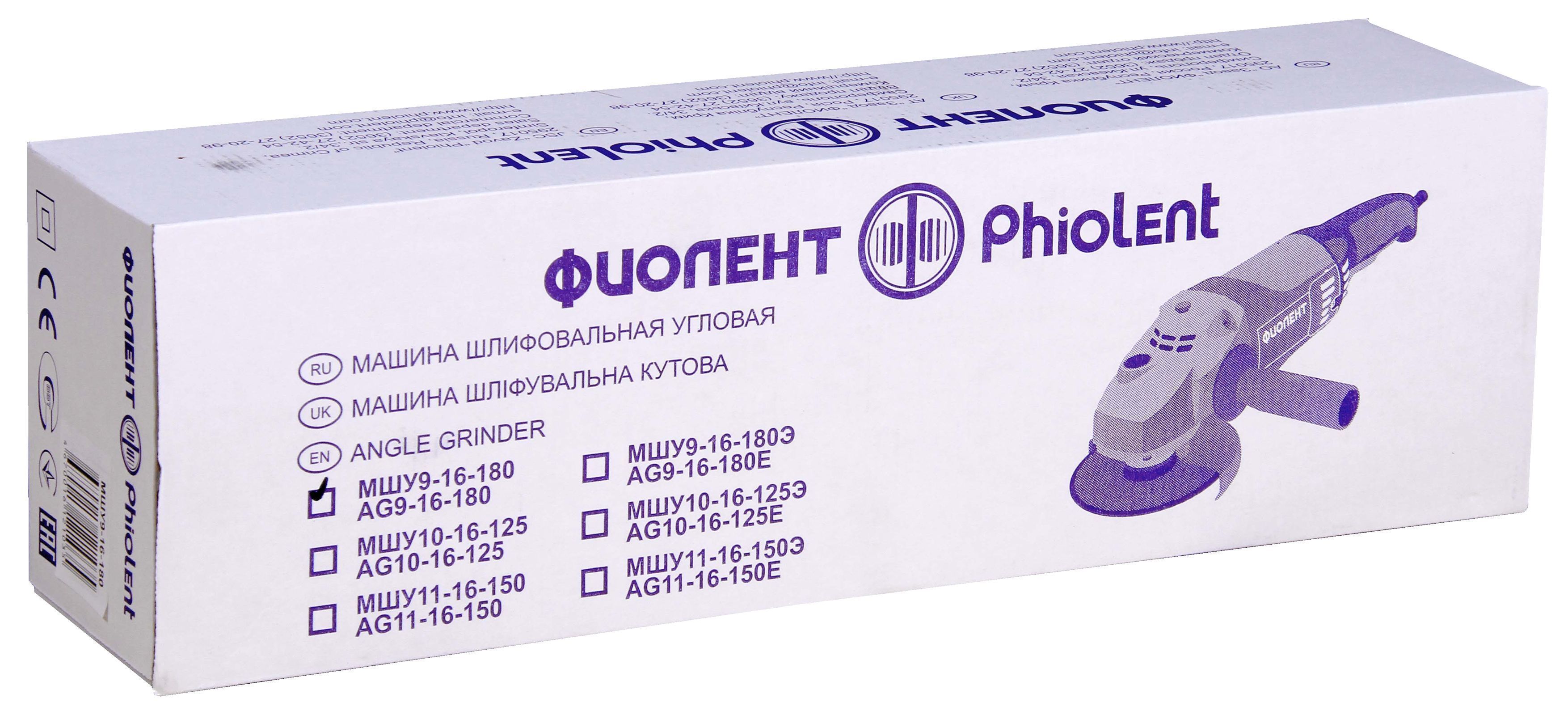 Угловая шлифовальная машина Фиолент МШУ9-16-180Э в продаже по цене 7 864 руб. в Интернет-магазине Проф-инструмент с доставкой в Екатеринбурге и Свердловской области. Звоните по телефону +8 (800) 302-10-51.