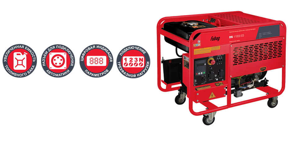 Дизельная электростанция FUBAG DS 11000 DA ES в продаже по цене 0 руб. в Интернет-магазине Проф-инструмент с доставкой в Екатеринбурге и Свердловской области. Звоните по телефону +8 (800) 302-10-51.