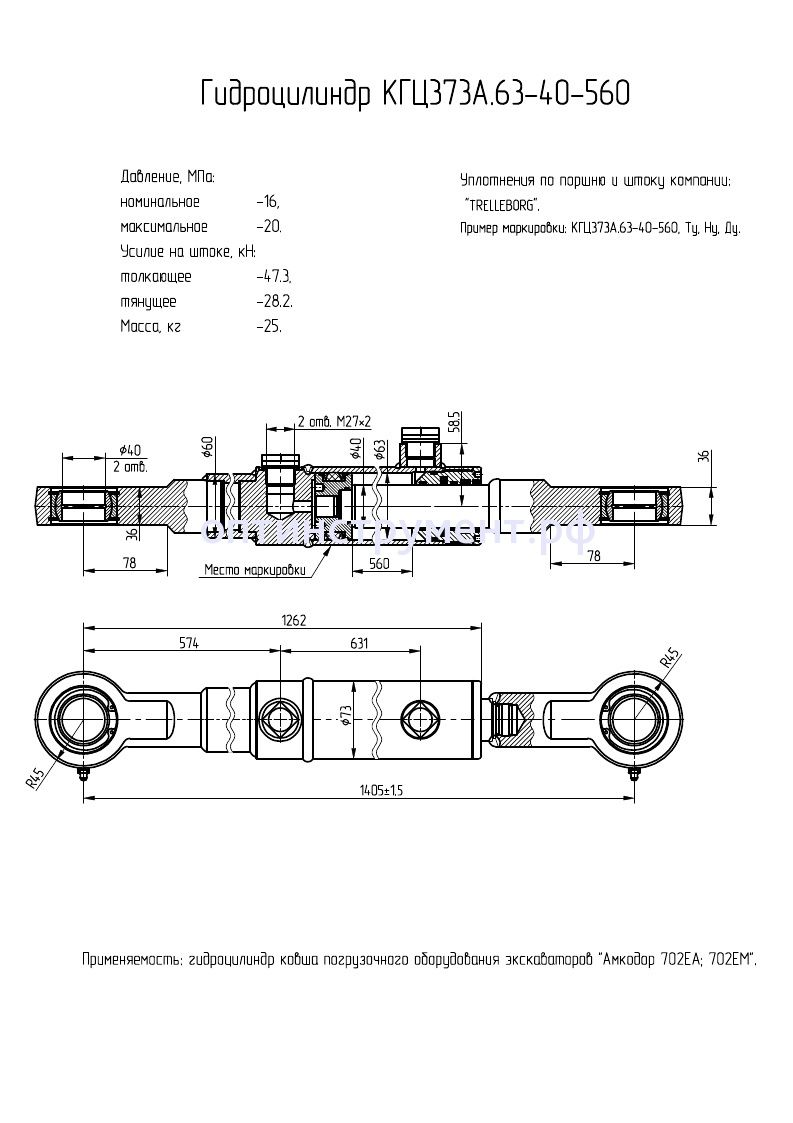 Гидроцилиндр ковша передней навески экскаваторов КГЦ 373А.63-40-560 в продаже по цене 13 440 руб. в Интернет-магазине Проф-инструмент с доставкой в Екатеринбурге и Свердловской области. Звоните по телефону +8 (800) 302-10-51.