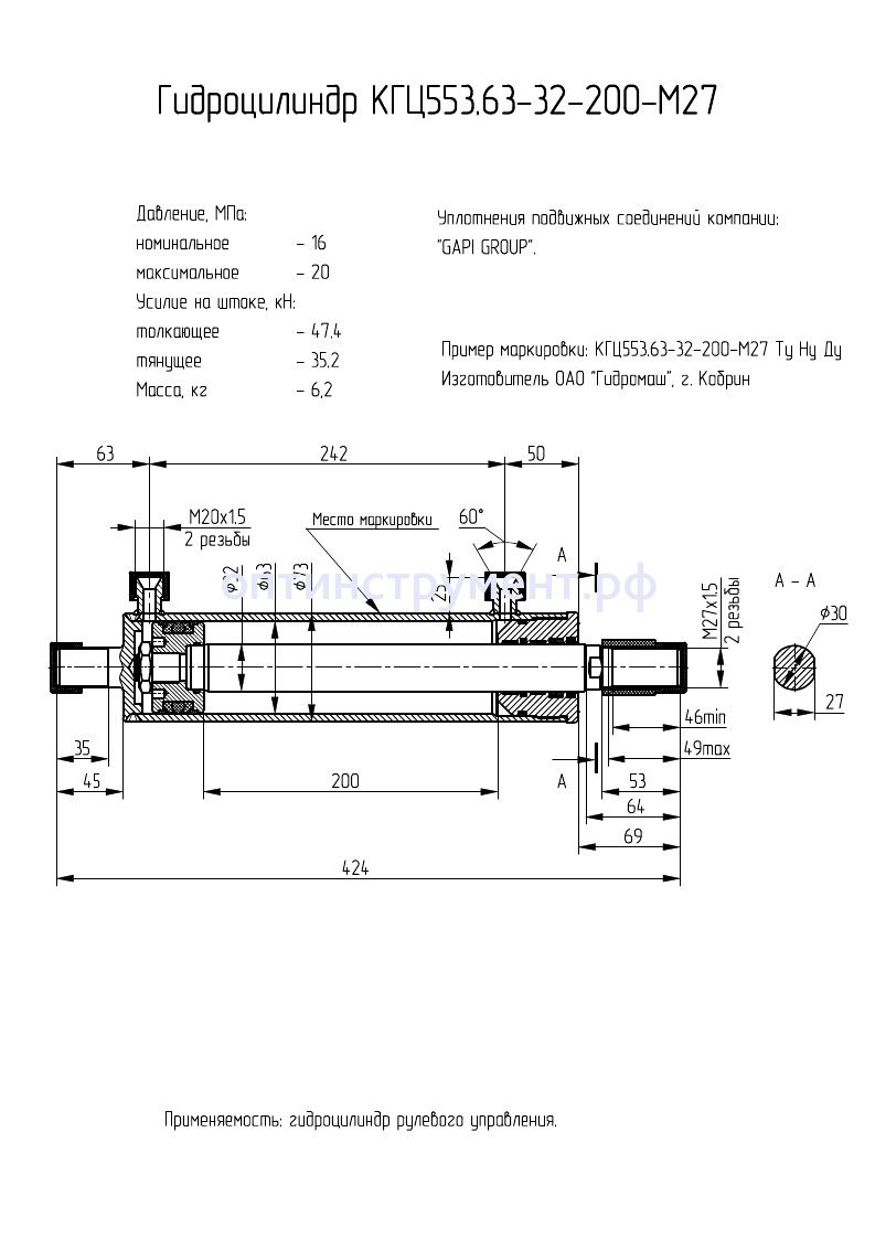 Гидроцилиндр рулевого управления КГЦ 553.63-32-200-М27 в продаже по цене 6 900 руб. в Интернет-магазине Проф-инструмент с доставкой в Екатеринбурге и Свердловской области. Звоните по телефону +8 (800) 302-10-51.