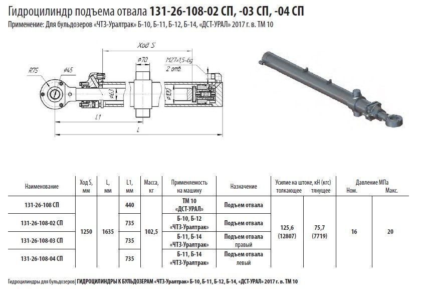 Гидроцилиндр подъема отвала 131-26-108-02 СП в продаже по цене 65 018 руб. в Интернет-магазине Проф-инструмент с доставкой в Екатеринбурге и Свердловской области. Звоните по телефону +8 (800) 302-10-51.
