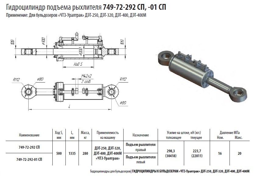Гидроцилиндр подъема рыхлителя (правый) 749-72-292 СП в продаже по цене 0 руб. в Интернет-магазине Проф-инструмент с доставкой в Екатеринбурге и Свердловской области. Звоните по телефону +8 (800) 302-10-51.