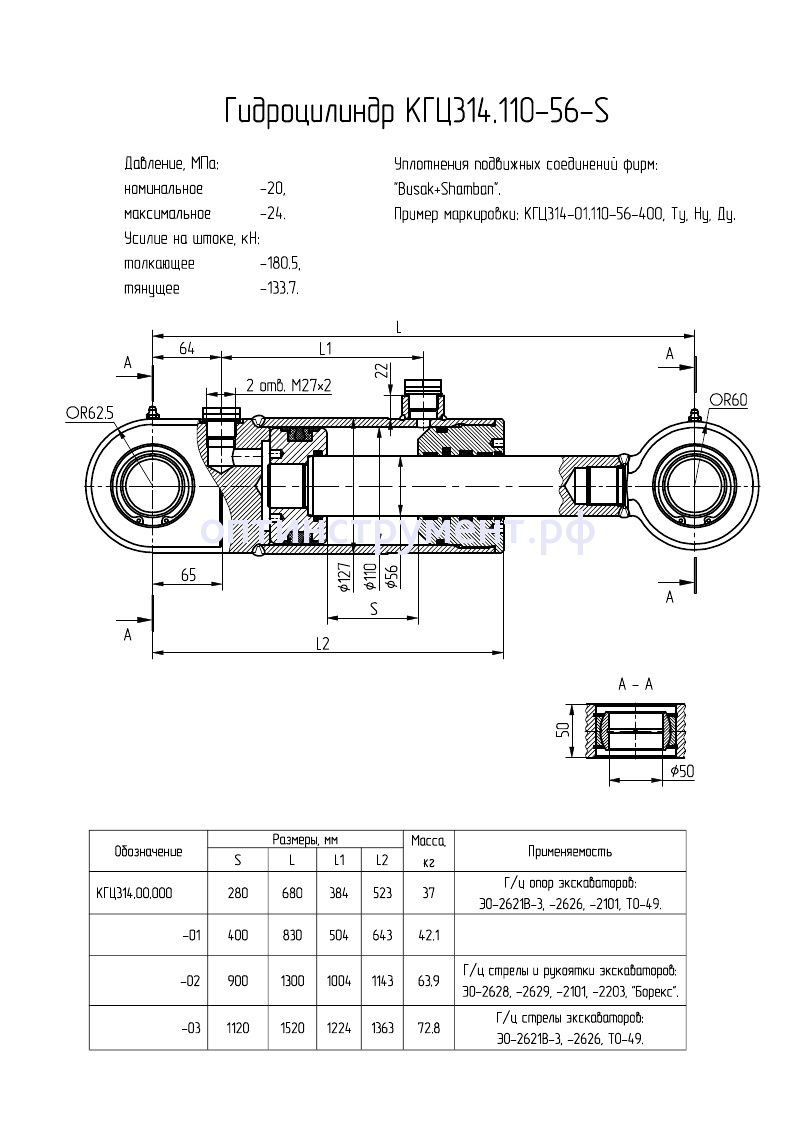 Гидроцилиндр подъема стрелы, рукоятки опор экскаваторов КГЦ 314.110-56-280 в продаже по цене 20 220 руб. в Интернет-магазине Проф-инструмент с доставкой в Екатеринбурге и Свердловской области. Звоните по телефону +8 (800) 302-10-51.