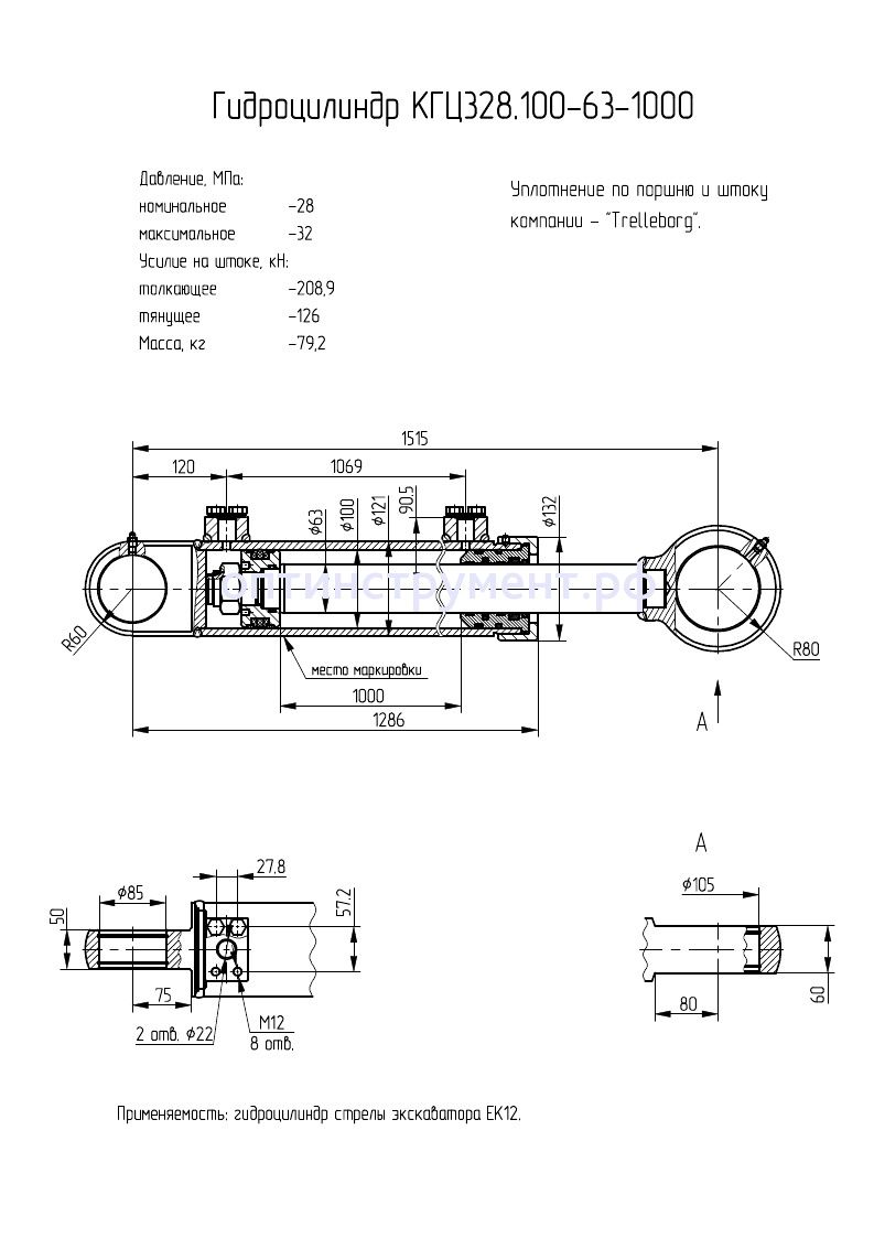 Гидроцилиндр стрелы экскаватора "ЕК12" КГЦ 328.100-63-1000 в продаже по цене 34 800 руб. в Интернет-магазине Проф-инструмент с доставкой в Екатеринбурге и Свердловской области. Звоните по телефону +8 (800) 302-10-51.