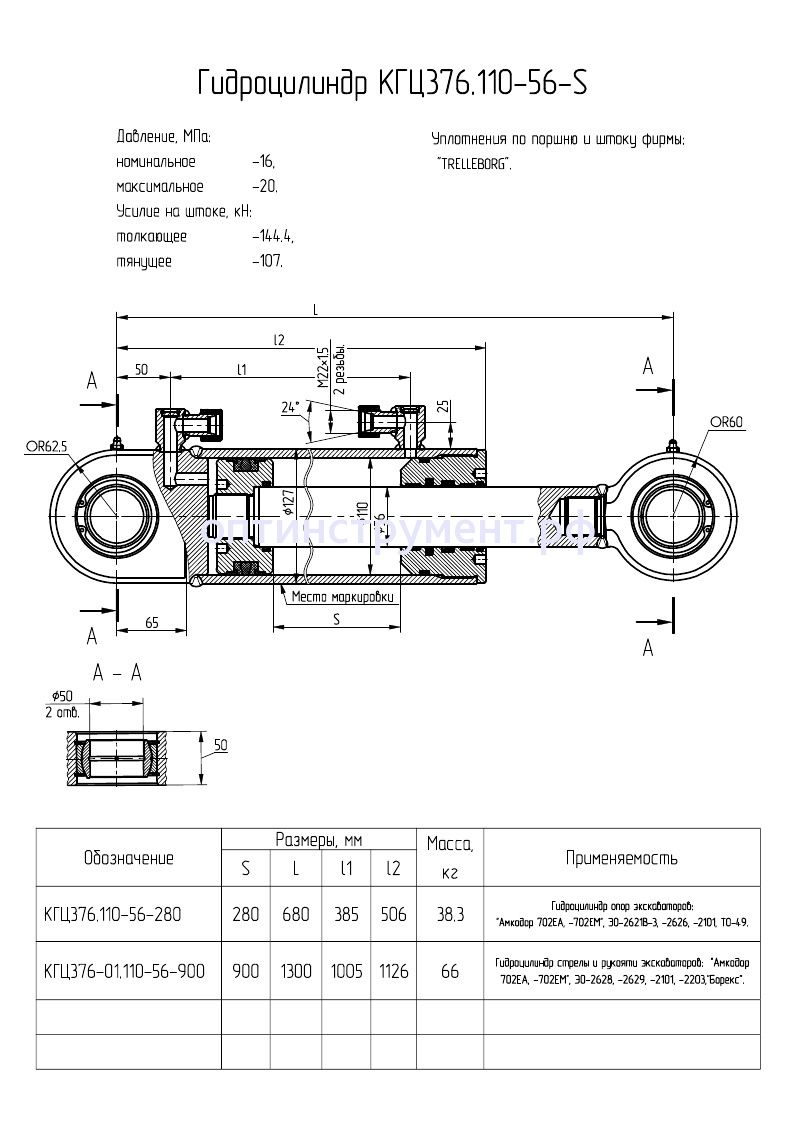 Гидроцилиндр для экскаваторов КГЦ 376-01.110-56-900 в продаже по цене 0 руб. в Интернет-магазине Проф-инструмент с доставкой в Екатеринбурге и Свердловской области. Звоните по телефону +8 (800) 302-10-51.