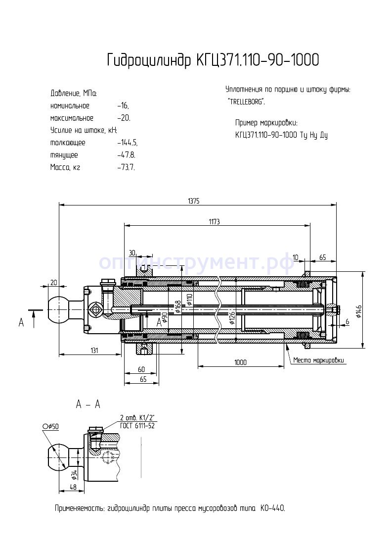 Гидроцилиндр плиты пресса мусоровозов типа "КО-440" КГЦ 371.110-90-1000 в продаже по цене 0 руб. в Интернет-магазине Проф-инструмент с доставкой в Екатеринбурге и Свердловской области. Звоните по телефону +8 (800) 302-10-51.