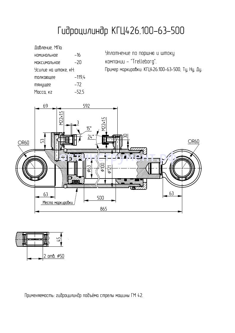 Гидроцилиндр подъёма стрелы машины "ГМ 42" КГЦ 426.100-63-500 в продаже по цене 25 080 руб. в Интернет-магазине Проф-инструмент с доставкой в Екатеринбурге и Свердловской области. Звоните по телефону +8 (800) 302-10-51.