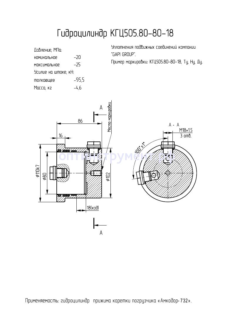 Гидроцилиндр прижима каретки погрузчика «Амкодор-732» КГЦ 505.80-80-18 в продаже по цене 3 825 руб. в Интернет-магазине Проф-инструмент с доставкой в Екатеринбурге и Свердловской области. Звоните по телефону +8 (800) 302-10-51.