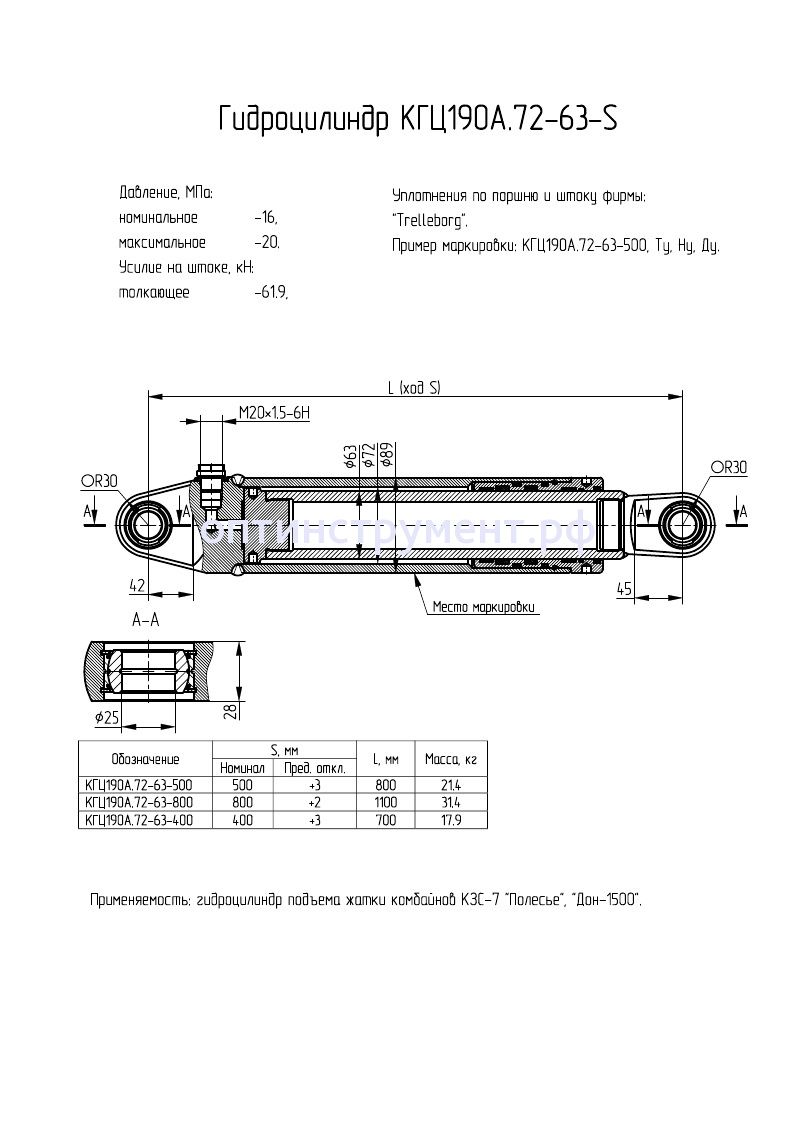 Гидроцилиндр подъема жатки комбайнов КГЦ 190А.72-63-400 в продаже по цене 0 руб. в Интернет-магазине Проф-инструмент с доставкой в Екатеринбурге и Свердловской области. Звоните по телефону +8 (800) 302-10-51.