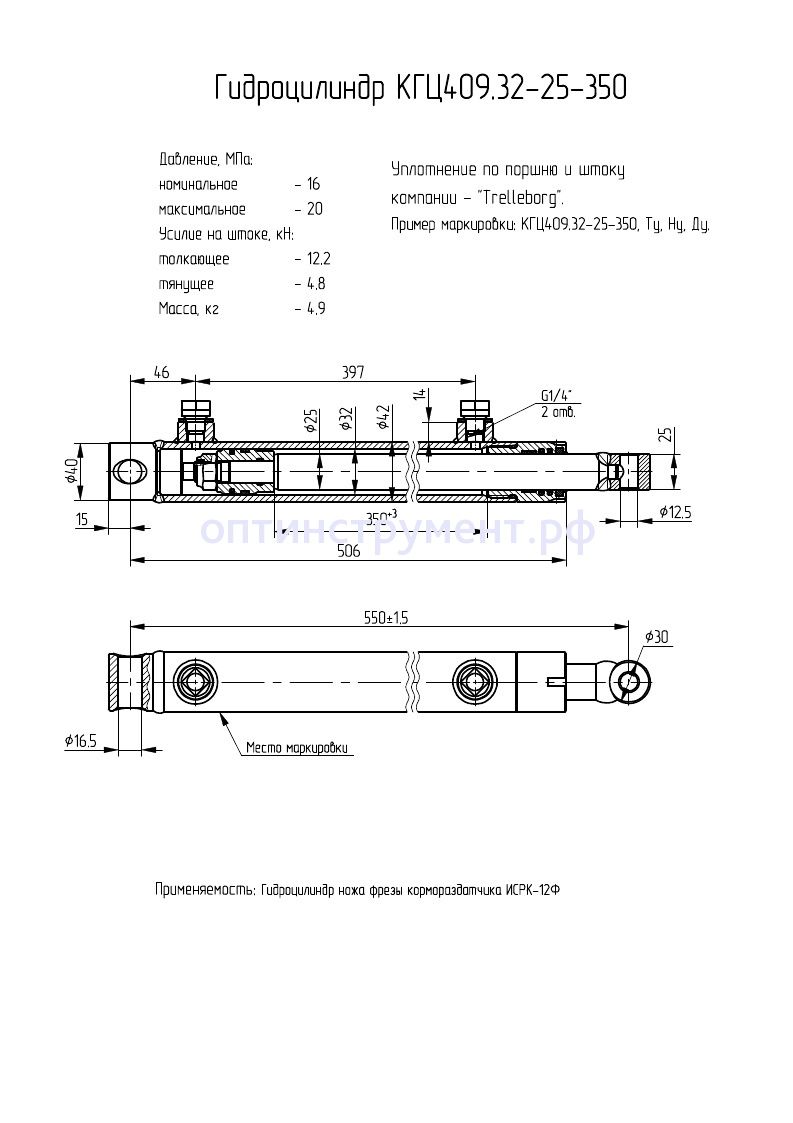 Гидроцилиндр ножа фрезы кормораздатчика "ИСРК-12Ф" КГЦ 409.32-25-350 в продаже по цене 0 руб. в Интернет-магазине Проф-инструмент с доставкой в Екатеринбурге и Свердловской области. Звоните по телефону +8 (800) 302-10-51.