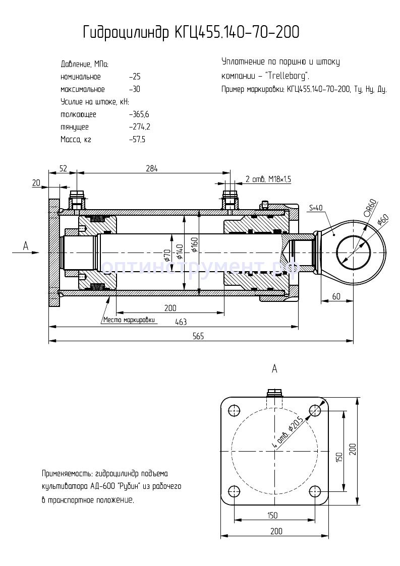 Гидроцилиндр подъема культиватора АД-600 "Рубин" КГЦ 455.140-70-200 в продаже по цене 27 045 руб. в Интернет-магазине Проф-инструмент с доставкой в Екатеринбурге и Свердловской области. Звоните по телефону +8 (800) 302-10-51.