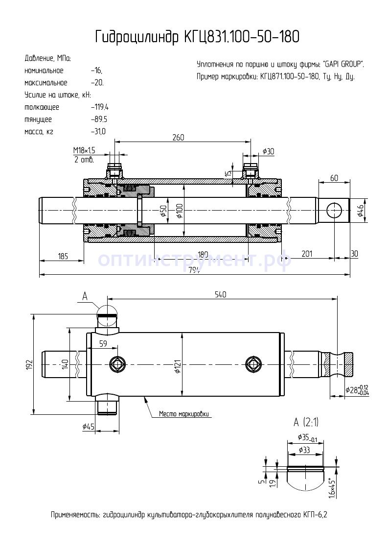 Гидроцилиндр культиватора-глубокорыхлителя полунавесного "КГП-6,2" КГЦ 831.100-50-180 в продаже по цене 22 620 руб. в Интернет-магазине Проф-инструмент с доставкой в Екатеринбурге и Свердловской области. Звоните по телефону +8 (800) 302-10-51.