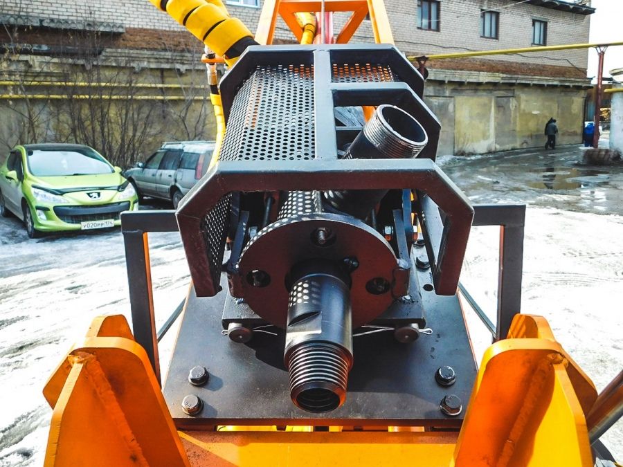 Все узлы буровой установки смонтированы на общей раме, где шарнирно установлена мачта сварной конструкции. При транспортировке она складывается в горизонтальное положение с помощью гидроцилиндра. На раме также установлены четыре гидравлических аутригера, которые обеспечивают 100-процентную устойчивость конструкции.