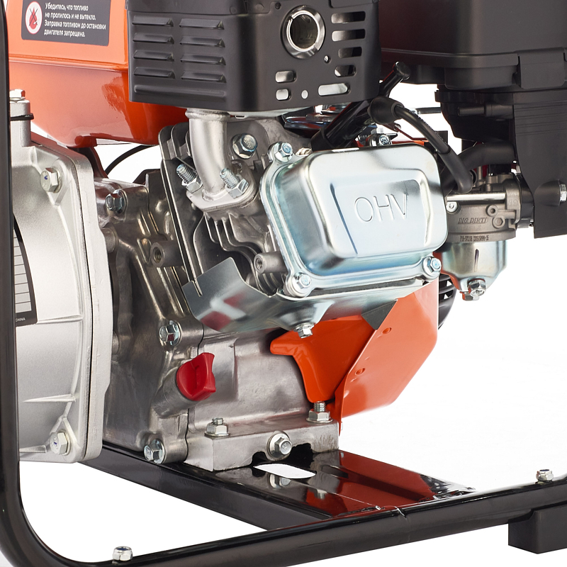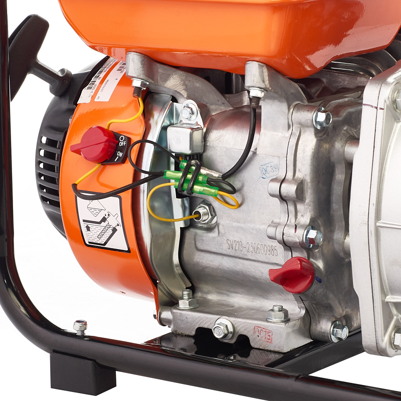 Бензиновая мотопомпа, для чистой воды (откачка речной воды, колодца, пруда) Мощность, 5.4 лс, Производительность 30 куб м/час, напор 30 м, высота всасывания 7 м, двигатель SV210, D вх/вых 50 мм, бак 3.0 л.