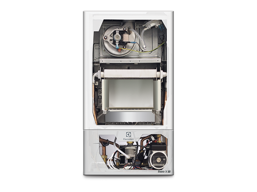 GCB 24 Basic X Fi – двухконтурный настенный газовый котел с закрытой камерой сгорания от компании «Electrolux» (Швеция). Предназначен для небольших систем отопления и горячего водоснабжения. Оснащен битермическим теплообменником, который совмещает два контура – отопления и горячего водоснабжения и закрытой камерой сгорания с принудительной системой дымоудаления.