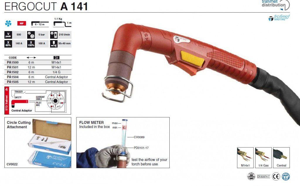 Плазмотрон Trafimet Ergocut A141 в продаже по цене 27 019 руб. в Интернет-магазине Проф-инструмент с доставкой в Екатеринбурге и Свердловской области. Звоните по телефону +8 (800) 302-10-51.