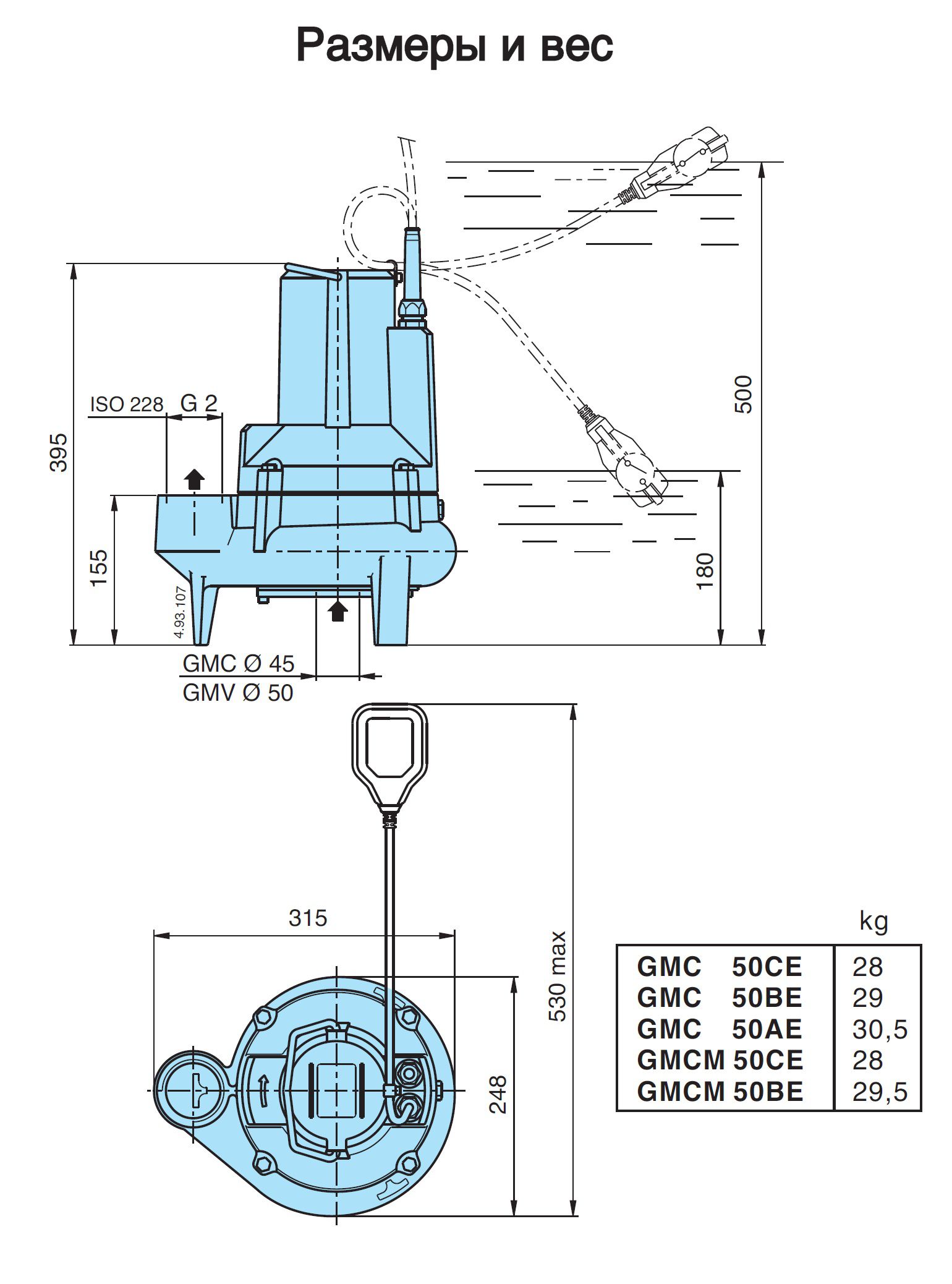 GM50 - погружные центробежные электронасосные агрегаты, выполненные из чугуна, предназначены для откачивания загрязненных вод, содержащих механические примеси с частицами диаметром до 45 мм.