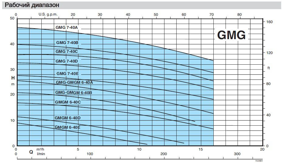 Насосные агрегаты типа GMG - погружные с открытым многолопастным рабочим колесом и блоком измельчения на всасывании. Проточная часть насоса, рабочие колеса выполнены из чугуна; блок измельчения - из нержавеющей стали AISI 440.