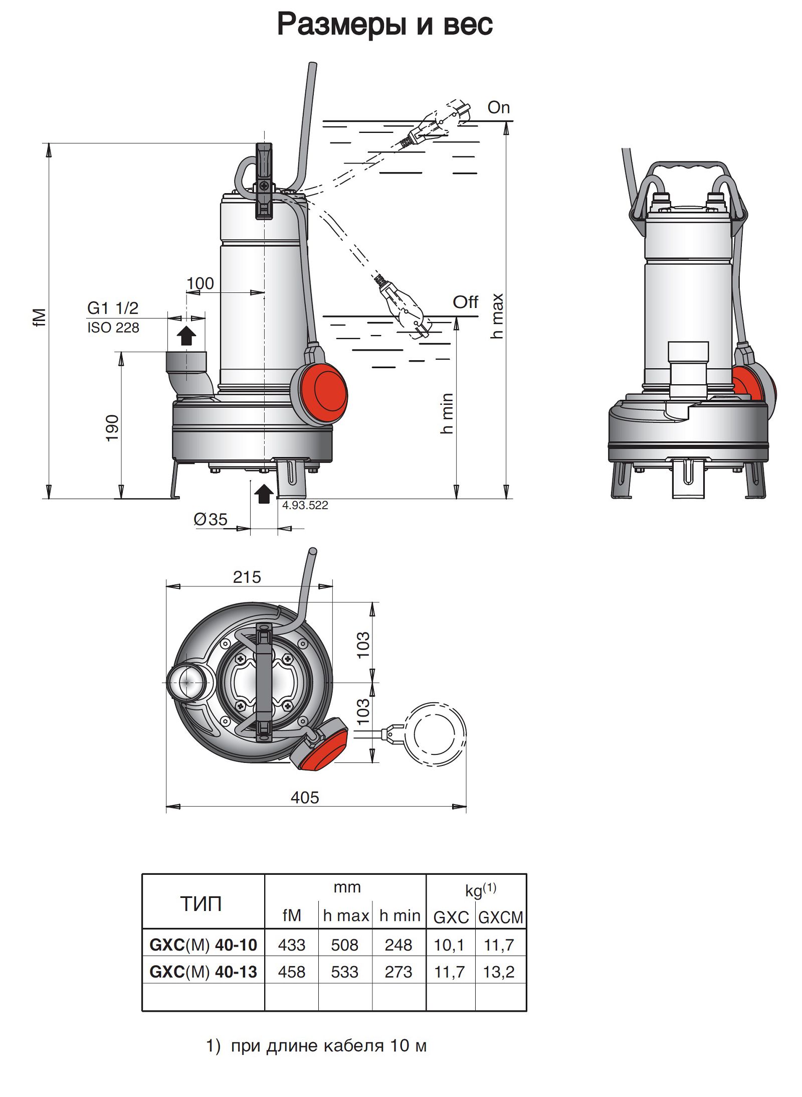 Дренажные насосные агрегаты типа GM10, GX40, GM50 с напряжением питания на 220 В укомплектованы автоматическим выключателем поплавкового типа, позволяющим насосу при изменении уровня жидкости включаться и отключаться автоматически.