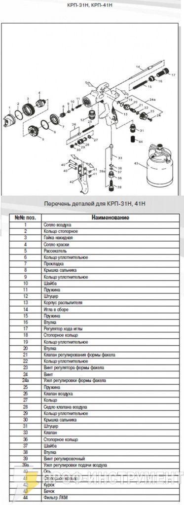 | 2 | поз. 4; КРП- 41В,41Н, сопло краски Ф 1,5мм | 1 |