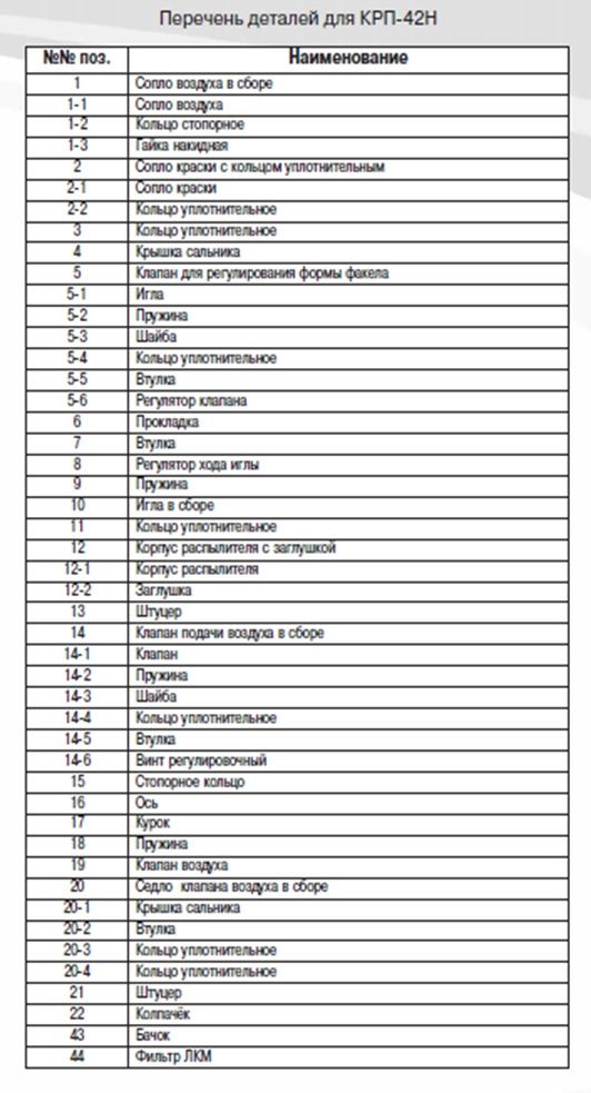 | 2 | поз. 2-1; КРП- 42, сопло краски Ф 2,5мм | 1 |