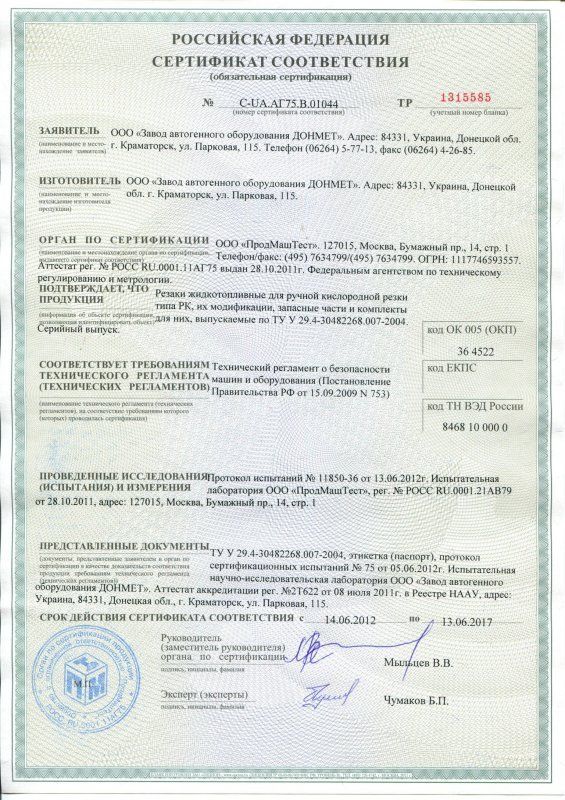 Пропановый резак Р1 Донмет 149 П (9/9)