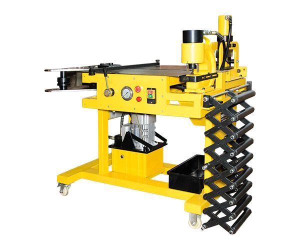 - Модернизированный перфоратор оборудован параллельным упором, позволяющим пробивать отверстия на фиксированном расстоянии от края шины. По желанию клиента возможна установка на станок перфоратора, оборудованного автоматическим прижимом шины. Перфоратор расположен у края рабочего стола, для удобства перфорации в уже изогнутой шине;