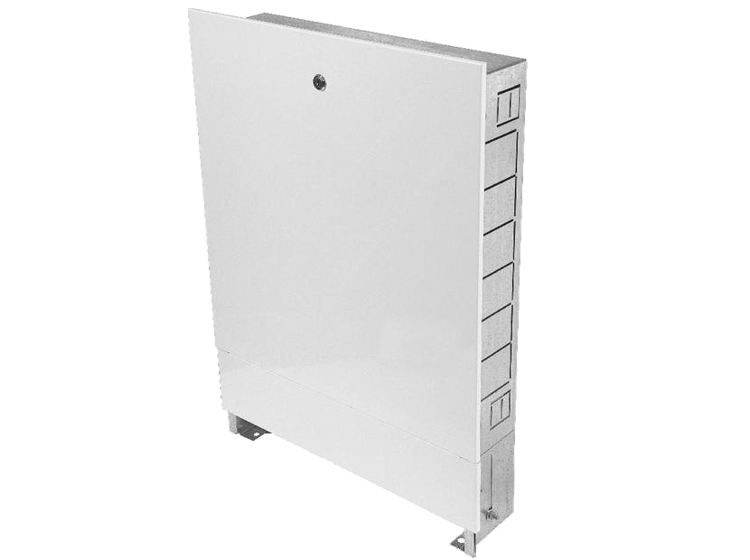 В боковых стенках корпуса шкафа выполнена перфорация, сегменты которой удаляются в любом удобном месте для подсоединения трубопроводов.