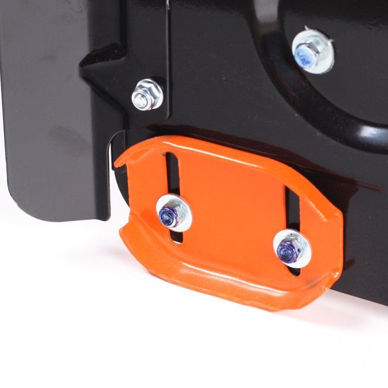 В конструкции снегоуборщика используются только подшипники, а не втулки. Шестерня редуктора шнека выполнена из бронзы, что в десятки раз увеличивает ресурс снегоуборщика. На заводе производится регулировка и обкатка каждой единицы техники в собранном состоянии. Укомплектован стальными планками увеличивающими ширину захвата для свежевыпавшего снега. Фара позволяет продолжать работу после наступления темноты.
