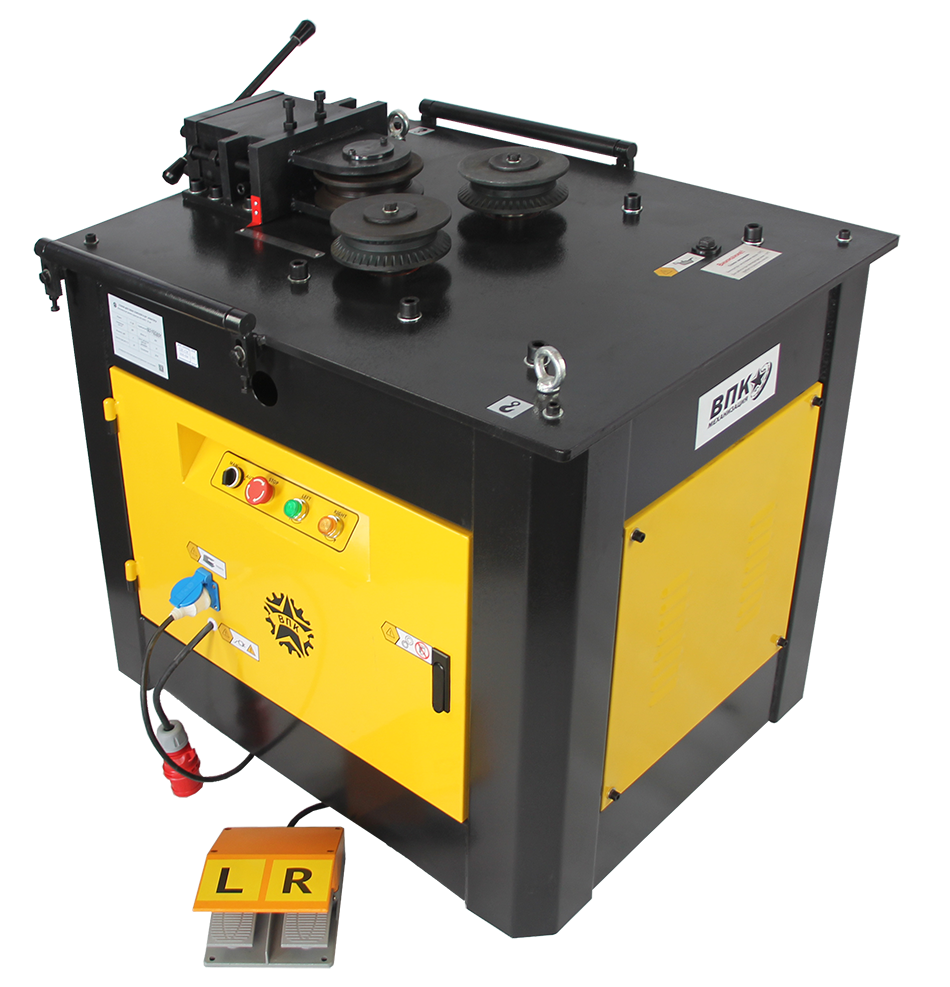 Арматура затягивается в станок при помощи 2-х подающих роликов. Посредством прижимного ролика регулируется диаметр спирали/дуги. Шаг спирали регулируется при помощи регулируемого упора.