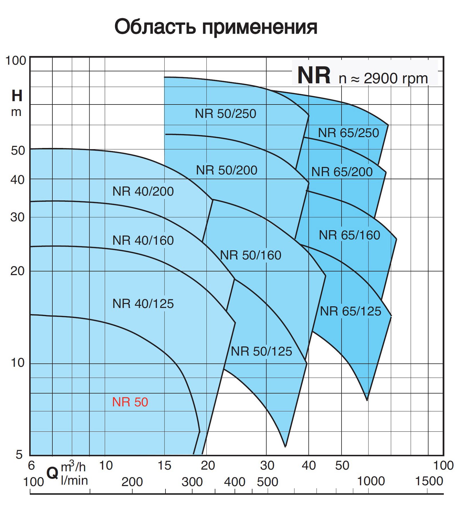 Насосные агрегаты NR4 - центробежные с одним рабочим колесом типа "IN - LINE" с четырехполюсным электродвигателем (n = 1450 об./мин.). Проточная часть насоса и присоединительные фланцы выполнены из чугуна; рабочее колесо - из латуни.
