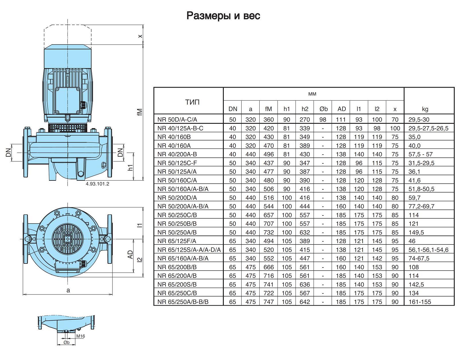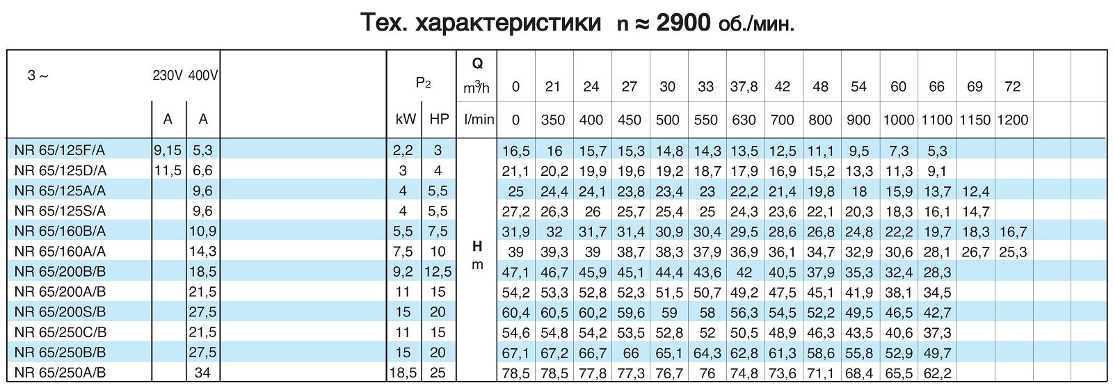 Насосные агрегаты NR4 - центробежные с одним рабочим колесом типа "IN - LINE" с четырехполюсным электродвигателем (n = 1450 об./мин.). Проточная часть насоса, рабочие колеса и присоединительные фланцы выполнены из чугуна.