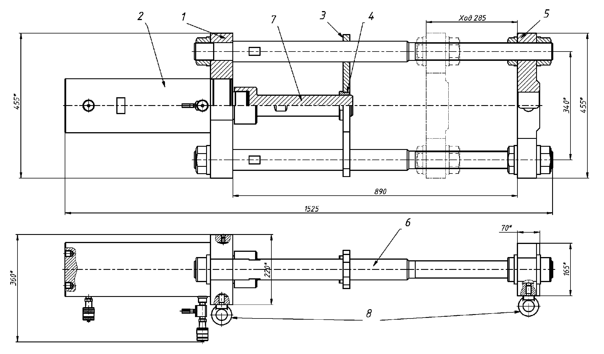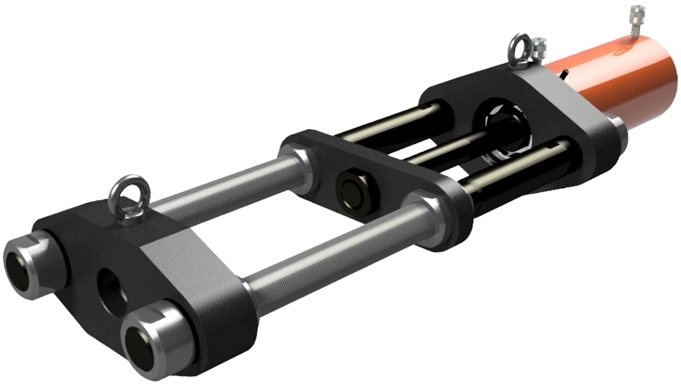 Перемещение штока осуществляется подачей масла под давлением в поршневую полость домкрата (2).